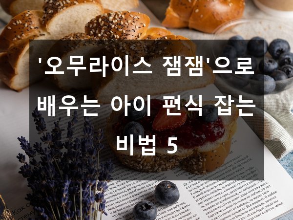 안녕하세요, 육아맘·육아빠 여러분! 🤗 혹시 아이가 밥 먹기 힘들어하거나 특정 음식을 거부하는 편식 때문에 고민해 본 적 있으신가요? 저도 그랬답니다. 그런데 어느 날 아이가 좋아하는 '오무라이스 잼잼'을 활용하면서 편식 문제를 조금씩 극복할 수 있었는데요. 오늘은 이 귀여운 메뉴를 통해 아이의 편식을 잡는 비법 5가지를 소개해 드릴게요! 🍚🍳