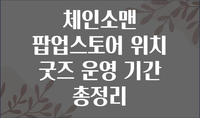 혹시 ‘체인소맨(pop-up store)’ 소식 들으셨나요? 요즘 애니메이션과 만화 팬들 사이에서 ‘체인소맨’ 굿즈가 대박 인기라 팝업스토어까지 뜨고 있답니다! 그런데 막상 어디에 있는지, 언제까지 하는지, 어떤 굿즈가 나오는지 모르겠다구요? 걱정 말아요~🤗 이번 글에서는 체인소맨 팝업스토어의 위치, 굿즈 종류, 운영 기간까지 완벽하게 알려드릴게요!🎉