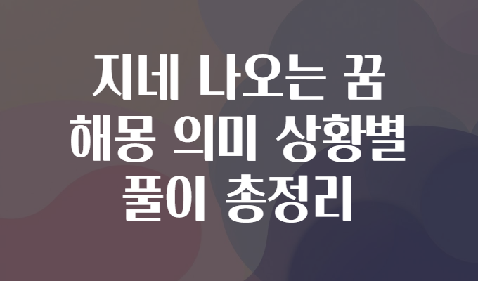📌 지네 꿈, 실생활에 바로 적용하는 법 💪😌